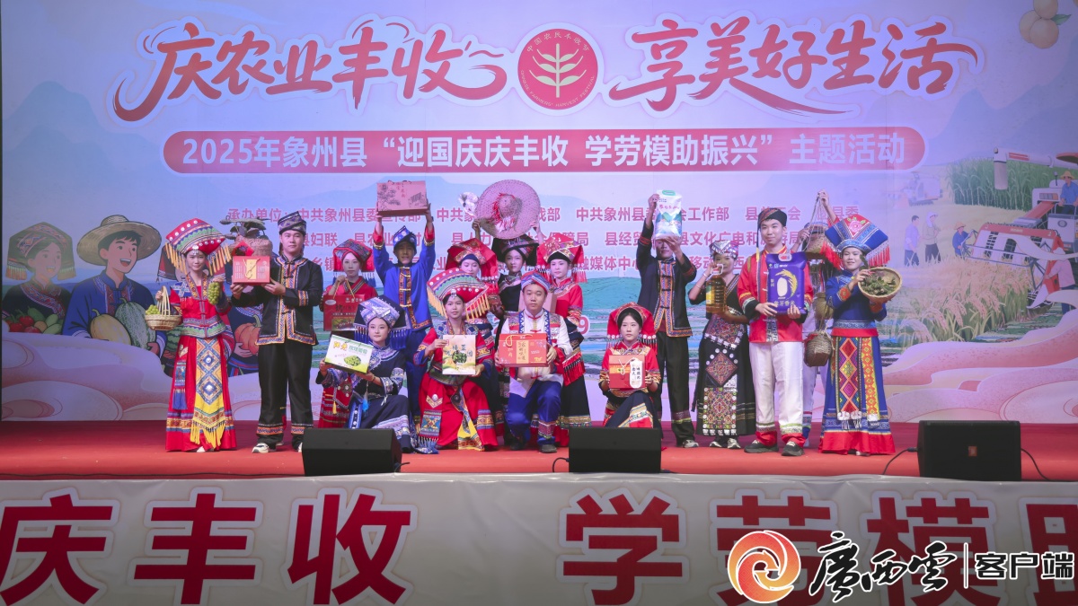 水中抓鱼的欢笑、拔河力量的碰撞、螺蛳粉“食神”的诞生、创意T台的惊叹、直播带货的喧嚣……9月27日晚,象州县文化广场沉浸在一片丰收的喜悦中,“迎国庆 庆丰收 学劳模 助振兴”中国农民丰收节庆祝活动在此举行。此次活动由县委宣传部、县委统战部、县委社会工作部、县总工会、县农业农村局等十余家单位联合主办,聚焦“庆农业丰收·享美好生活”主题,采用“线验+线上赋能”双线融合模式,将政策宣讲、产业对接、人才引进、文化传承与民生服务深度融合。